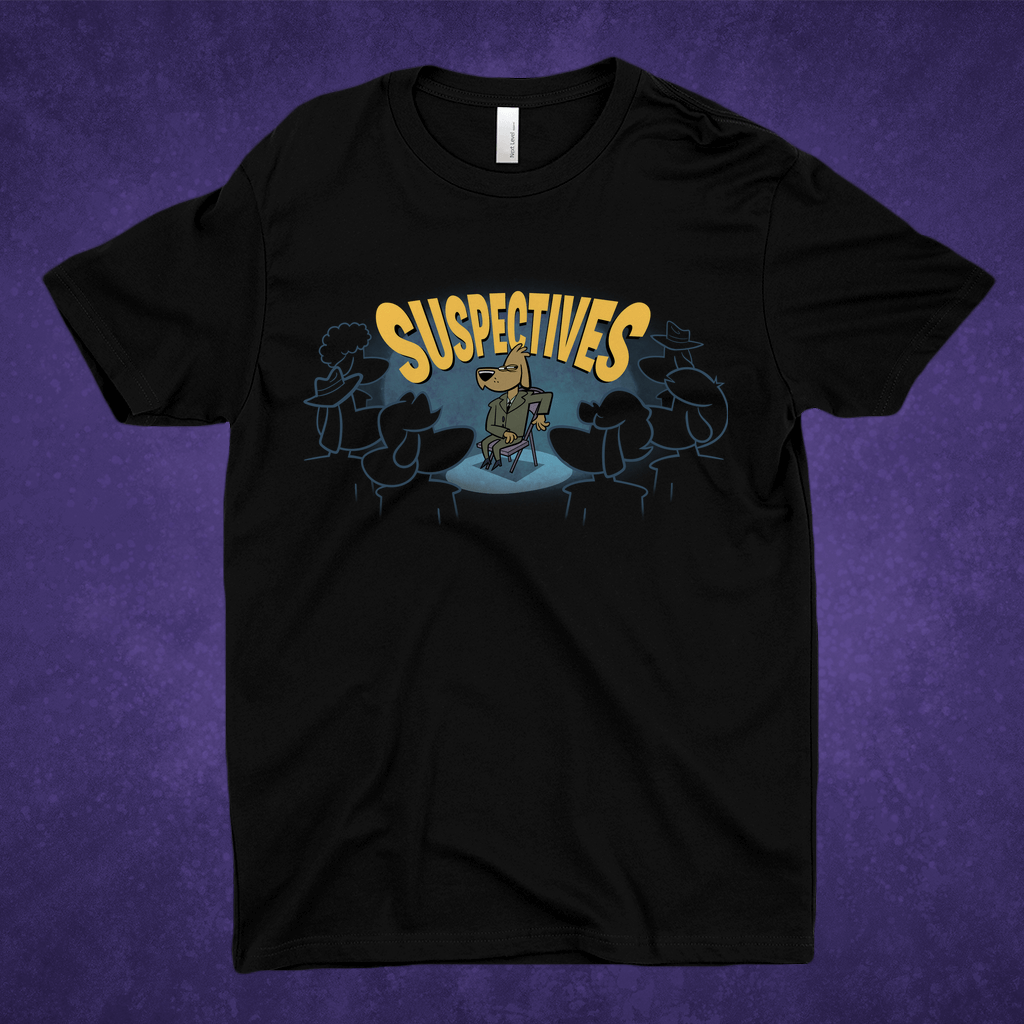 A crime has been committed, but not against fashion! Channel the noir vibes of Suspectives with this classic tee. Looks great under a suit and paired with a fedora or, you know, with jeans...